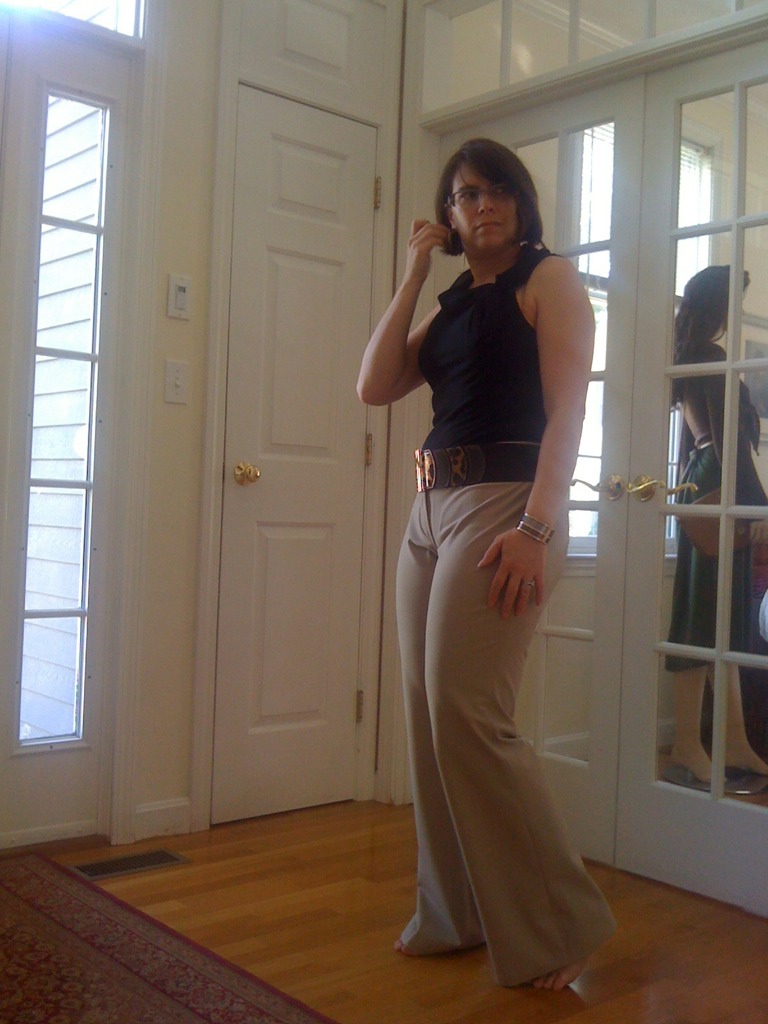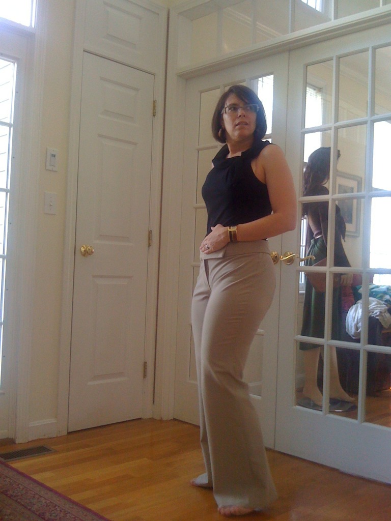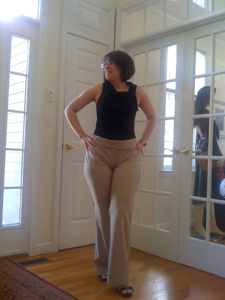The pants are finished! They are too tight to actually wear but the next pair will be great! I think if the fabric were a thicker material like stretch denim, I could use the pattern as is, but this light weight stretch tropical wool needs a little more ease. After wearing the pants for a while, I noticed wrinkling at the front crotch. My daughter says this is because the legs are too tight and they are riding up. Does anyone concur? I would love to just cut another pair with wider outseam allowances and have them fit.