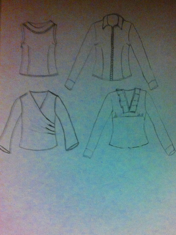 I am so excited that my sewing has FINALLY gotten to a level where the things I make fit me well enough that I can focus on style instead of fit. I can't stop thinking about what to make! I have some gorgeous fabric in my stash that I have been afraid to cut. Now, I can't wait to stitch it up. In an attempt to formalize my fall wardrobe plan, I have sketched a couple of variations of the tailored shirt pattern included with My Label. I plan to make a woven silk print shell to wear under a jacket, a woven silk tailored shirt with a crystal zipper up the center, a stretch knit silk print wrap top, and a woven silk print blouse with pleated self fabric trim, as well as three more pairs of pants from wool crepe, stretch tropical wool, and a beautiful fine menswear pin stripe - all from my stash! CoLoR mE HaPpy!!
