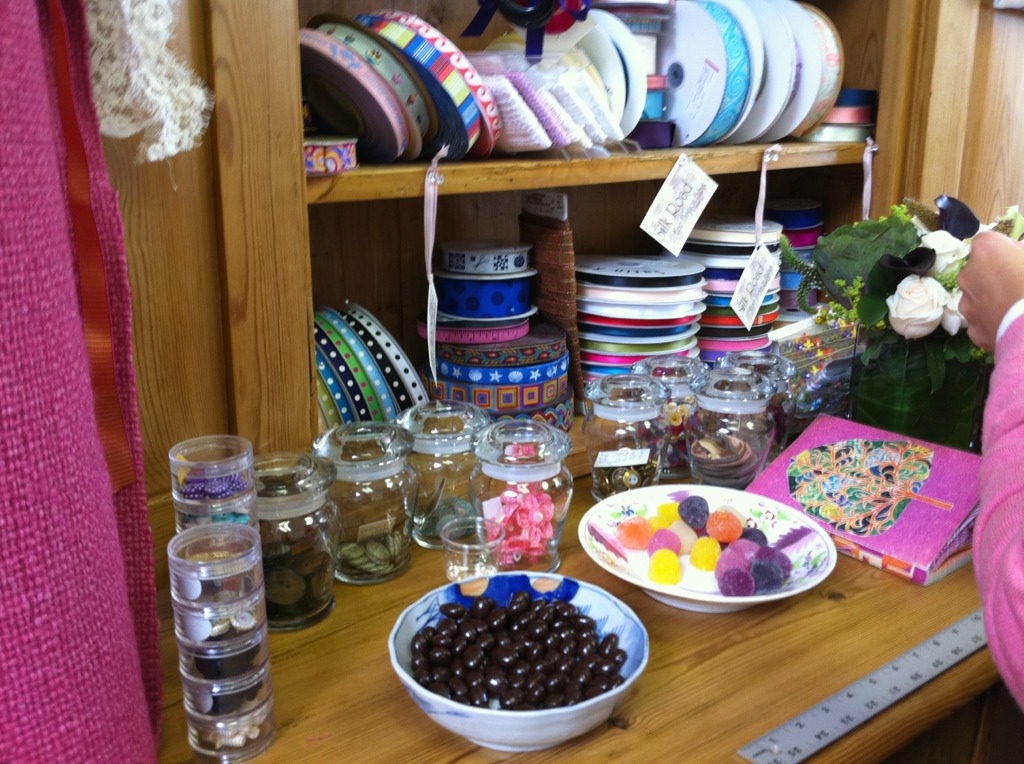 Unique Boutique. It is the place where I had my body scan done. In addition to offering the body scan, they have a fabulous, well planned workroom in back with bright lighting, lots of table space, and comfortable rolling chairs. The wiring for electricity comes down from the ceiling, so rolling carts do not get hung up on cords taped to the floor. There are multiple pressing stations equipped with tailors boards and Rowenta steam irons as well. Around the perimeter, there are threads and notions for sale, including interfacings, needles, chalk, pins, and even a few books for sale. They also have a little kitchenette - everything you need for a sewing retreat. The front room is a showroom which features impeccably executed garments made from high end fabrics - real eye candy! The idea is we can have custom fitted clothing made to order, or custom patterns which we can stitch up ourselves. The owners, Lorrie and Jan, are fun and friendly, and very accommodating. They whipped up a last minute kit for me when I showed up unprepared for my workshop. (I neglected to read the supply list with my email confirmation.) Thank you so much, guys!!